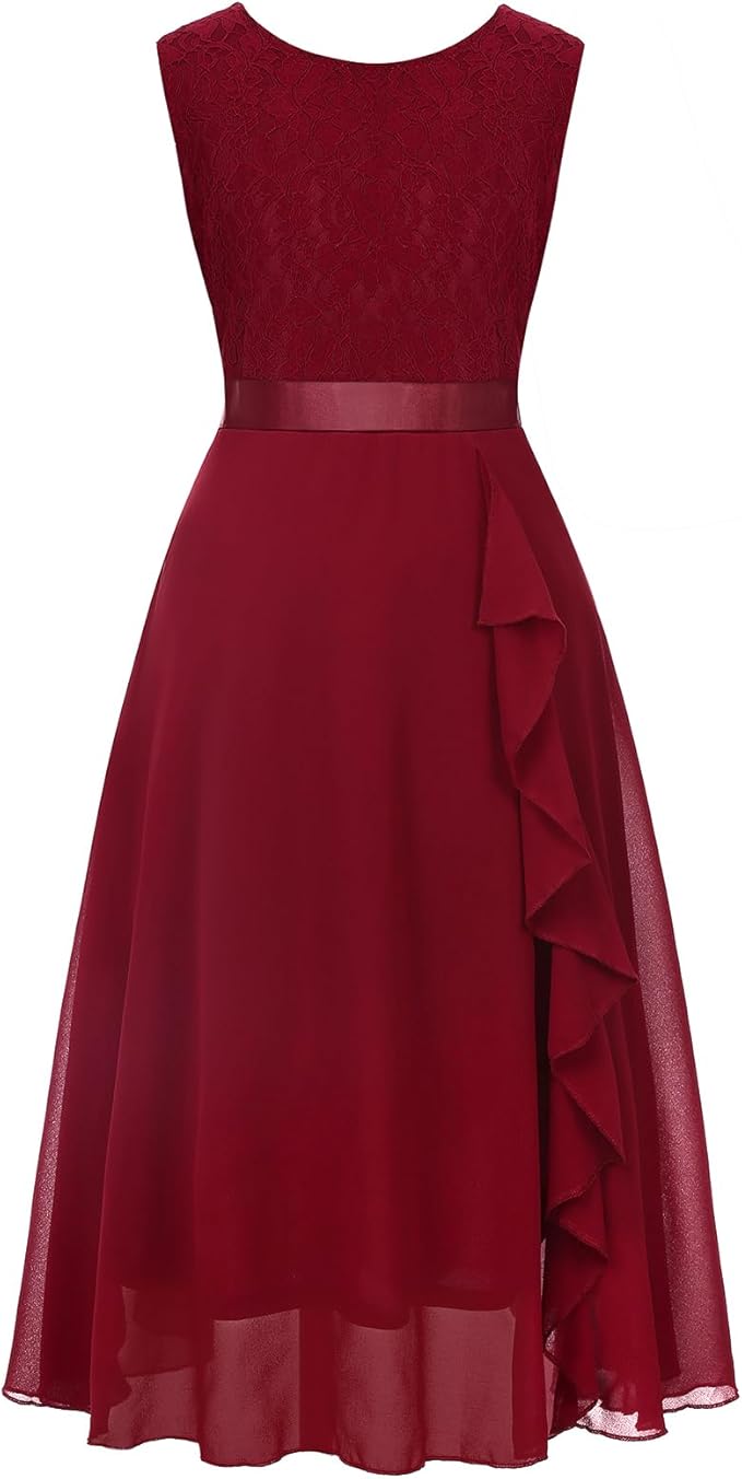 Girls Lace Boho Flower Girl Dress Ruffle Sleeve A-Line Formal Dresses for Wedding Party 6-12 Years
