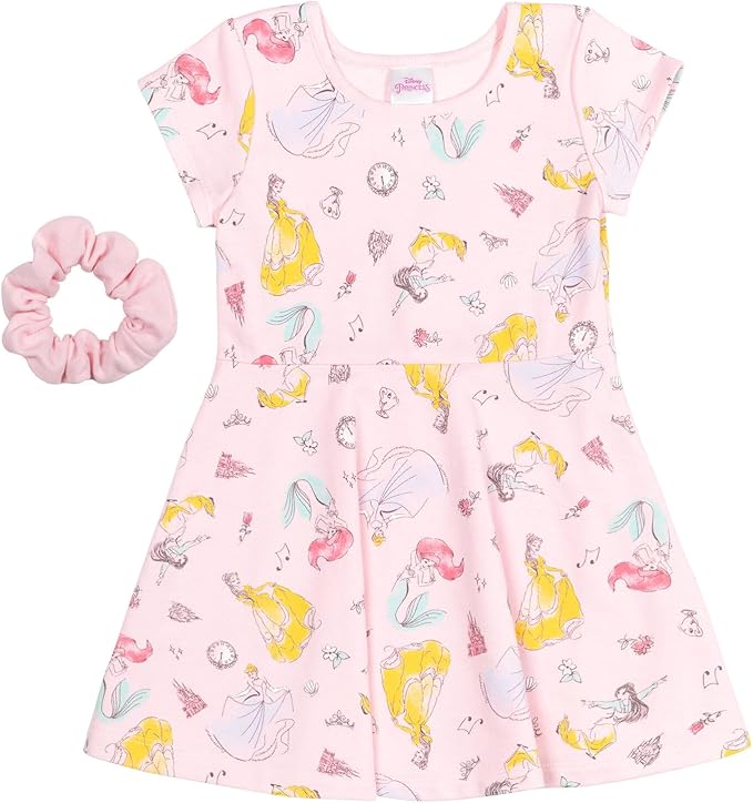 Princess Frozen Minnie Mouse Moana Mulan The Little Mermaid Cinderella Skater Dress Scrunchie Toddler to Big Kid