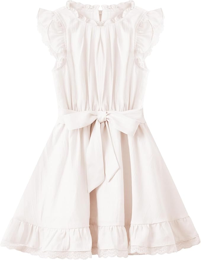 Girls Summer Dress Sleeveless Ruffle Trim A-line Swing Dress Casual Party 5-14 Years