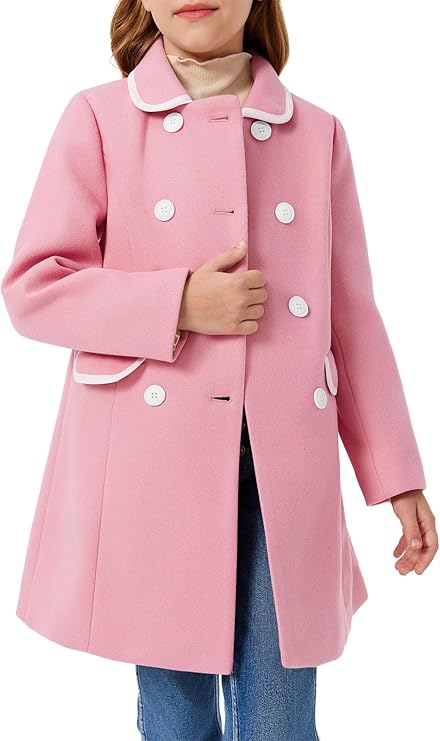 Girls Dress Coats Cute Long Sleeve Outwears Faux Wool Lapel Peacoat with Pockets 5-14 Years