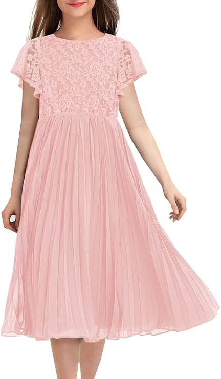 Girls Dress Flutter Sleeve A-Line Button Down Sundress Casual Midi Dresses for 4-12 Years Kids