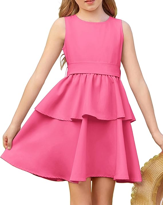 Girls Party Dress Sleeveless Formal Dual-Layer Dresses Size 5-12
