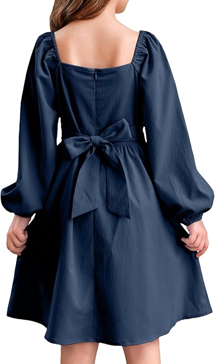 Girl's Sweater Dress Long Sleeve Casual Crew Neck Flowy Pullover Fall Dress 5-14Y