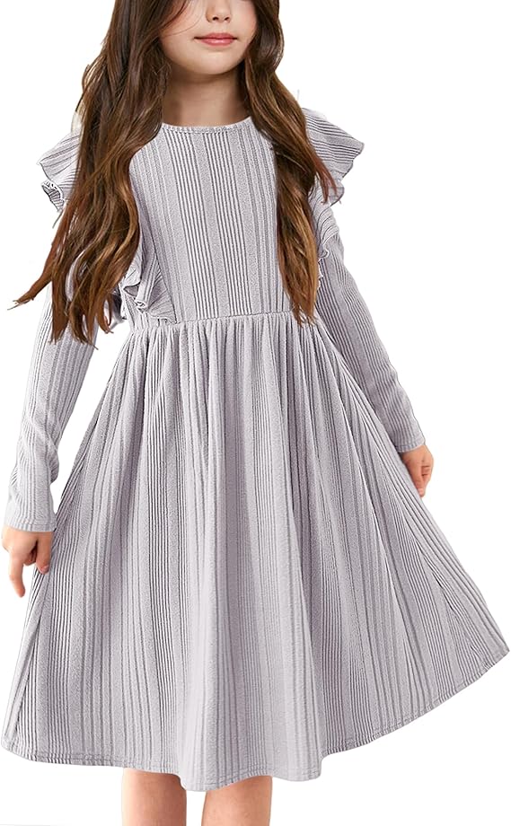 Girls Long Sleeve Dress A Line Fall Winter Dresses Ruffle Hem Kids Casual Holiday Christmas Dress