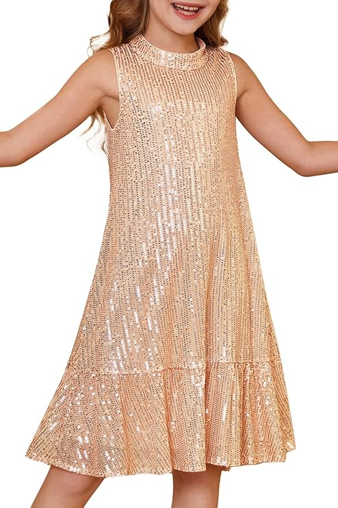 Girls Kid Sequin Party Dresses Mock Neck Sleeveless Sparkly Fancy Formal Dress Size 5-12 Years