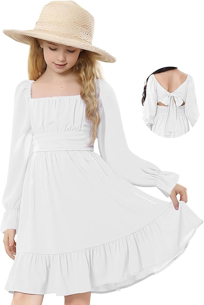 Girls Dresses Long Sleeve Elegant Back Tie Dresses for Girls 6-16 Years…
