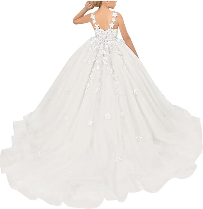 Tulle Flower Girl Dresses for Wedding Floral Appliques Princess Pageant Dress Girls Birthday Party Ball Gown