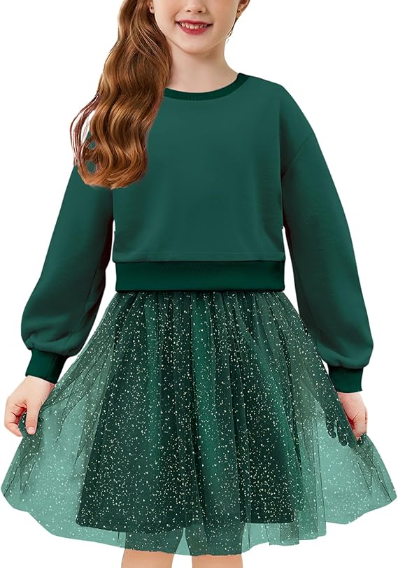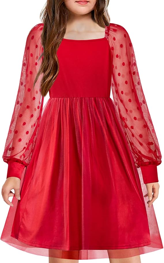 Girl Tulle Dress Puff Long Sleeve Teen Girls Party Casual Dresses 5-12Y