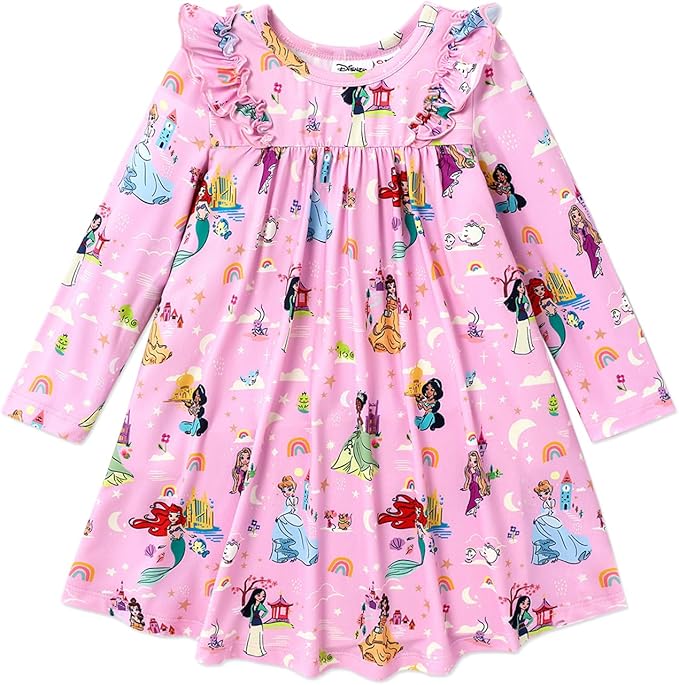 Princess Aurora Cinderella Moana Ariel Toddler Girl Dress Character Print Casual Floral Dresses Gift for 2-6 Years