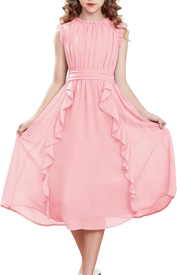 Girls Party Dress Ruffle Sleeveless Special Occasion Spring Dresses